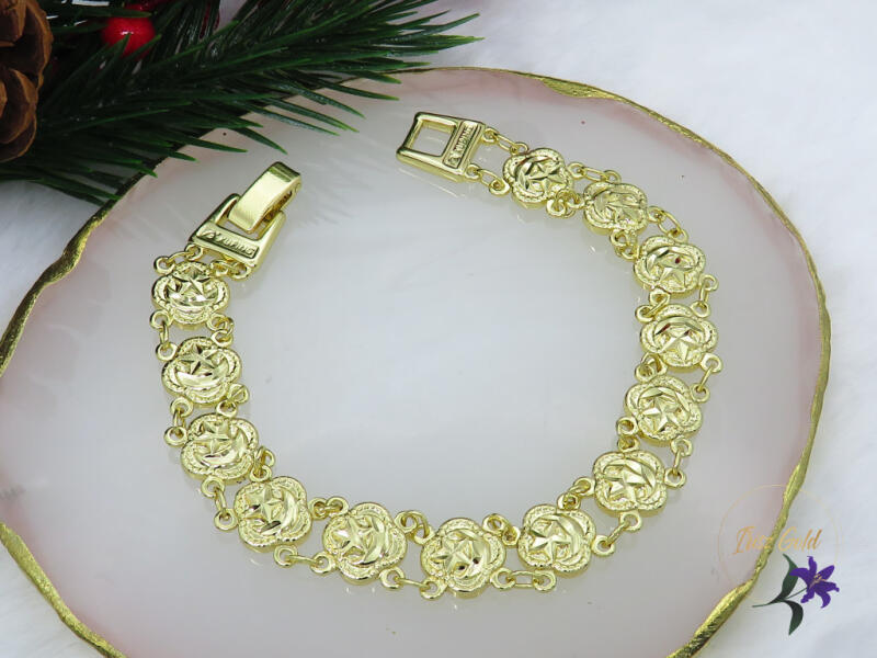 Gold Filled gyönyörű metszett rózsamintás karkötő Szin: 14K Méret: 18cm/10mm A forgalmazott divatékszerek alapanyaga nikkel és ólommentes ezért többnyire nem okoznak allergiás tüneteket, nyugodtan hordhatják fémérzékeny emberek is. Általában nem színezik a bőrt és más divatékszerekhez képest nagyságrendekkel jobb kopásállósággal rendelkeznek. A fehér (ezüst) szín