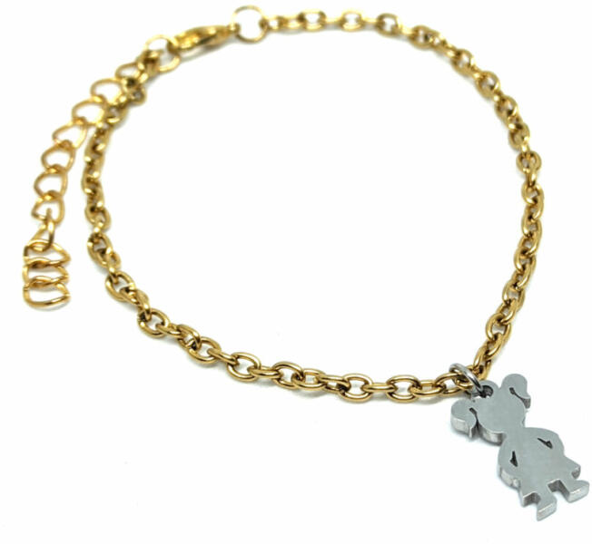 Karkötő mérete 17+5 cm. (Ha 20+5 cm vagy más méretet szeretnél, rendeléskor a MEGJEGYZÉSBE írd be. ) Nemesacél kislány charmos karkötő. Paraméterek: Charm mérete kb. 1,8 cm, a színe ezüst, anyaga nemesacél. Karkötő anyaga rozsdamentes acél.