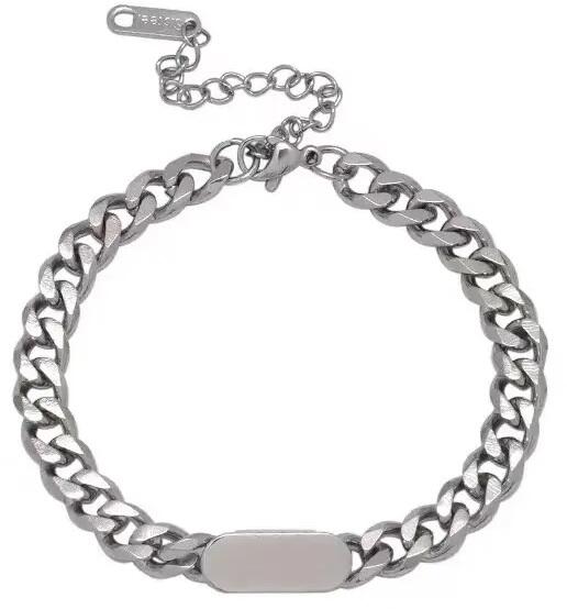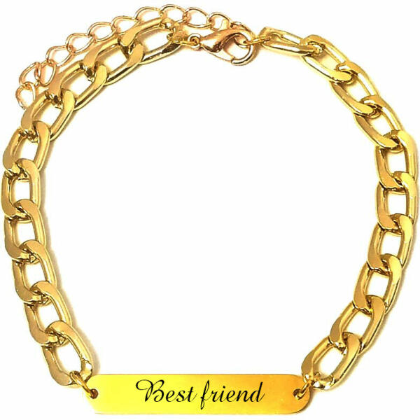 Paraméterek: – A vékonyabb karlánc: A szemek 4x3 mm-esek, vékony, elegáns, diszkrét (de azért nem a legvékonyabb karlánc). A karlánc anyaga rozsdamentes acél! A felirat lapocska kb. 30x6 mm-es, rozsdamentes tüköracél. – Vastagabb karlánc: A szemek kb. 9x7 mm-esek, nem nagyon vastag, nem is vékony. A karlánc anyaga rozsdamentes alumínium. A felirat lapocska kb. 30x6 mm-es, roz