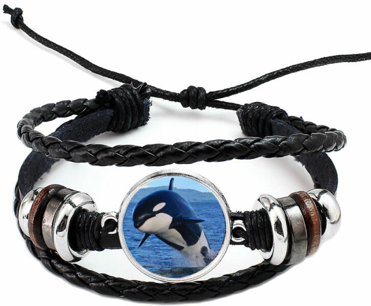 Ez az egyedi dizájn csak nálunk kapható. Tartós, egyedi, kézzel készült ékszer. Ha állatmániás vagy, és különösen a kardszárnyú delfineket (orca, más néven gyilkos bálna) kedveled, valamint szívesen mutatod ki egy ékszer formájában is rajongásodat az állatvilág iránt, akkor ezt a gyilkos bálnás üveglencsés karkötőt neked találták ki. Elegáns, fekete szín, mind