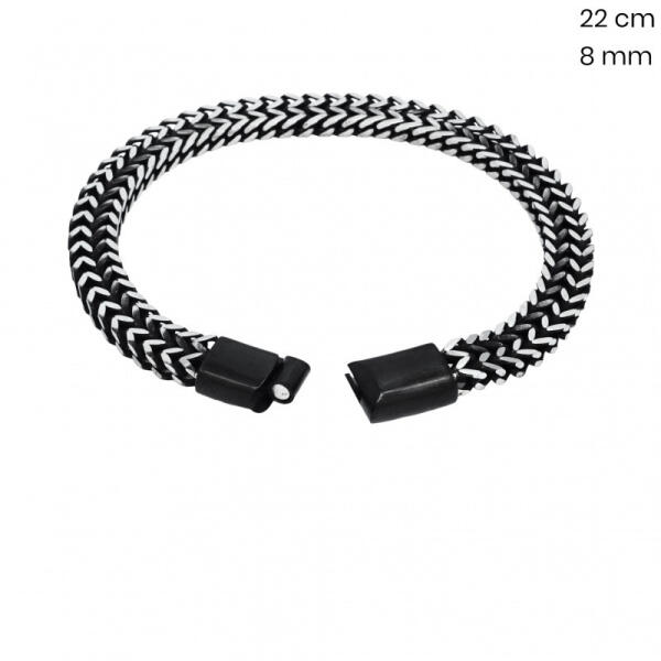 Termék jellemzői: Fekete színű acél karkötő, a csatot gravírozzuk körvonalasan. A gravírozás színe fém színű lesz. Gravírozási technika : Mechanikus (körvonalas) Méret(pánttal és csattal együtt):220x8mm Anyaga : Rozsdamentes acél