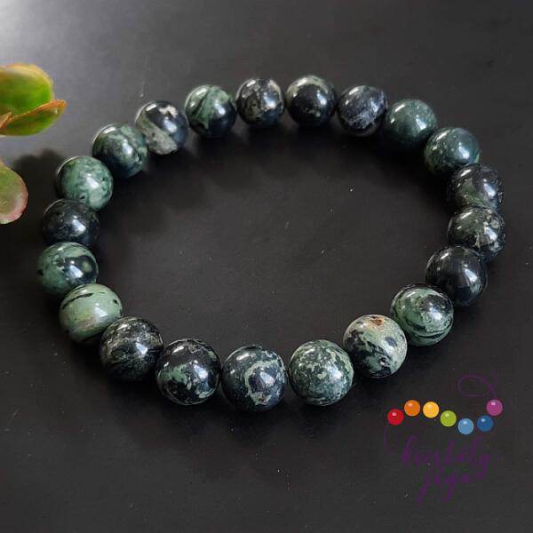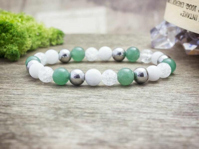 Jáde, aventurin, hematit és roppantott hegyikristály ásványokból fűzött gumis karkötő. Amit a jádéról érdemes tudnod: A Jáde egy gyűjtőcsoportja a kövek egy fajtájának. Lelki gyógyhatása: Több örömmel és életkedvvel ajándékoz meg minket. Növeli a bennünk lévő szeretetet, a harmónia iránti igényünket. Testi gyógyhatás: Szabályozza a szervezet sav-bázis egyen