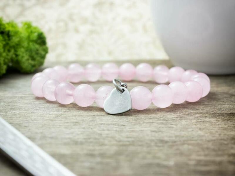 Rózsakvarc ásvány golyókból fűzött gumis karkötő. Szív medál mérete: 1 x 1 cm. Amit a rózsakvarcról érdemes tudnod: A festetlen rózsakvarc az egész világos, szinte áttetszőtől, a ködös középrózsaszínig terjed. Az egyik legnépszerűbb kövek egyike, amely szépséges küllemének és erős gyógyhatásának köszönhető. Története a görög és római mitológiába ny