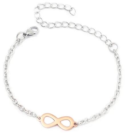 Joy Karkötő Modern Joy karkötő verhetetlen áron. Az ékszer nem tartalmaz nikkelt, ezért érzékeny bőrű emberek is viselhetik. Tulajdonságok: A karkötő hossza: 15cm + 7cm A díszítés mérete: 1,6cm x 0,6cm Szín: Ezüst/RózsaArany Anyaga: Nemesacél