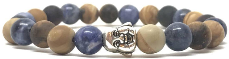 Egyedi ásvány karkötő Buddha fej köztes dísszel A 8mm-es Jáspis, matt Tigrisszem és Szodalit ásvány golyókból készült karkötő speciális gumis damilra van fűzve, buddha fej díszítéssel. Amit a Jáspis ásványról tudni kell: Gyakori előfordulása és a földszínek széles skálája miatt a jáspist ősidők óta használják dísztárgyak és pecsétek készítésére. Mági