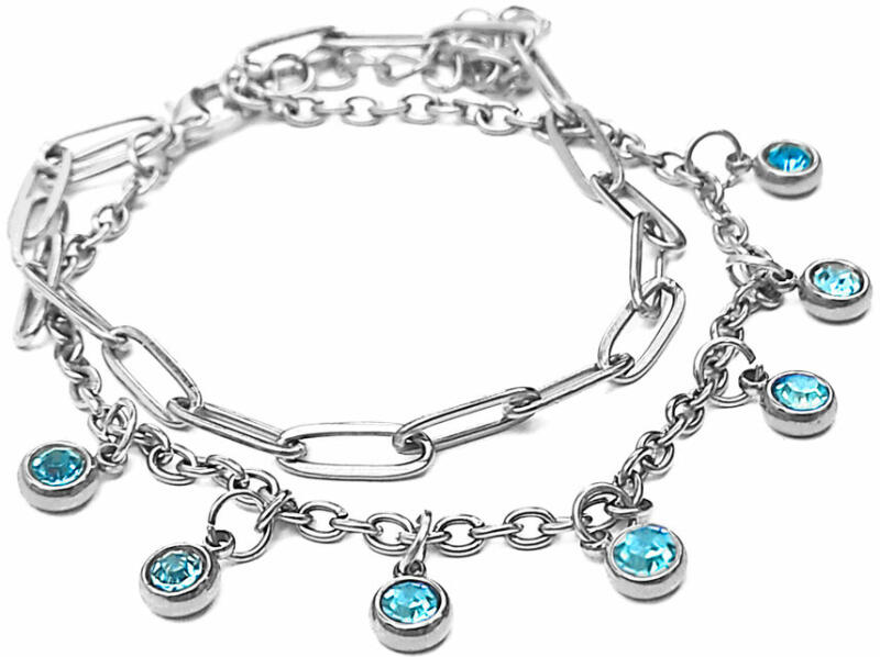 Kék kristályos charmos dupla karkötő, 7 charmmal. Paramé terek: Charm mérete 0,6 cm. Anyaga nemesacél, karkötő anyaga rozsdamentes acél. Karkötő mérete 17+5 cm. (Ha ettől eltérő méretet szeretnél, rendeléskor a MEGJEGYZÉSBE írd be. ) Szélesség 4 és 3 mm. Csajos, divatos, mégis vagány karkötő, nem túl sok, nem túl kevés, feltűnő, de nem hivalkodó.