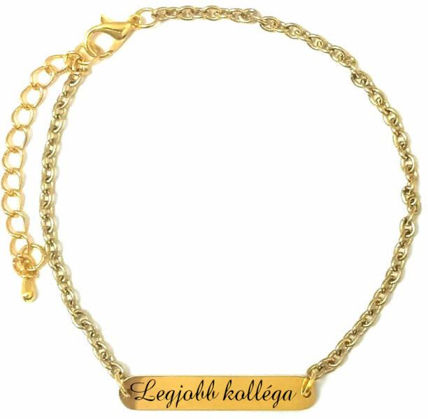 Paraméterek: – A vékonyabb karlánc: A szemek 4x3 mm-esek, vékony, elegáns, diszkrét (de azért nem a legvékonyabb karlánc). A karlánc anyaga rozsdamentes acél! A felirat lapocska kb. 30x6 mm-es, rozsdamentes tüköracél. – Vastagabb karlánc: A szemek kb. 9x7 mm-esek, nem nagyon vastag, nem is vékony. A karlánc anyaga rozsdamentes alumínium. A felirat lapocska kb. 30x6 mm-es, roz