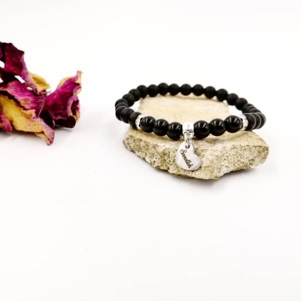 Egyedi tervezésű 6 mm ónix ásványgyöngyökből készült, "Szeretlek" feliratos medállal díszített karkötő. Ezzel a karkötővel igazán kitudod fejezni szeretetedet!