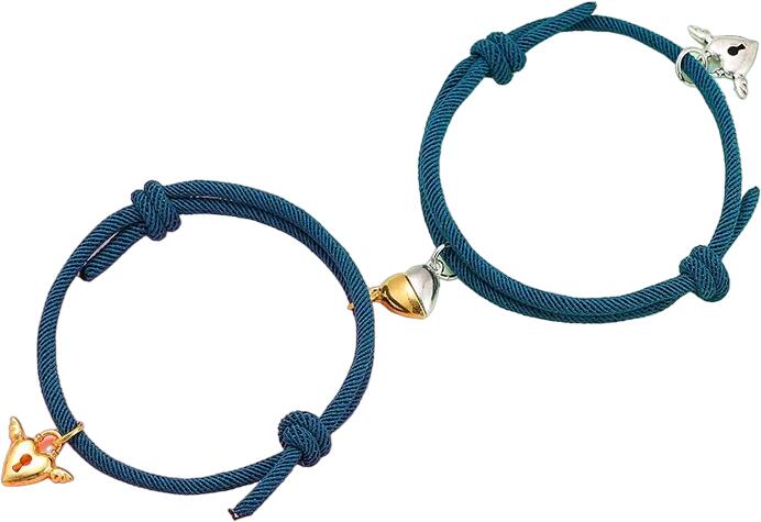 Heart Magnet Karkötők Modern Heart Magnet karkötők verhetetlen áron. Az ékszer nem tartalmaz nikkelt, ezért érzékeny bőrű emberek is viselhetik. A csomagolásban 2db különálló karkötő van, így az egyiket barátjának/barátnőjének ajándékozhatja. Tulajdonságok: A karkötő hossza: max. 18cm (zsinóros, húzással állítható) Szín: Kék Díszítése: szívecske, lakat