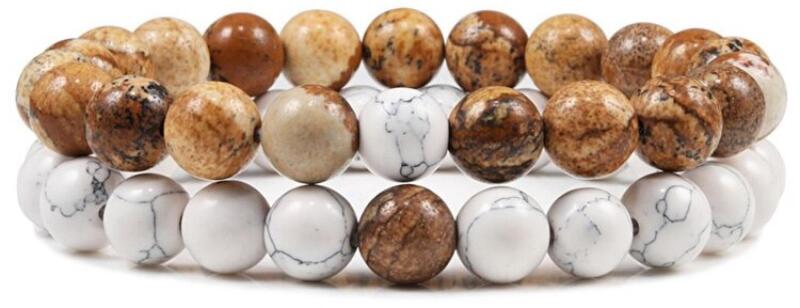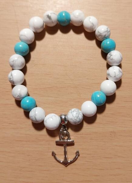 Howlit és Türkinit ásványból készült női karkötő ezüst színű vasmacska medállal. A gyöngyök mérete: 8 mm-es ásványgyöngyök Rugalmas, gumis ékszerdamil alapra készült Az ékszerek természetes ásványból készülnek, így méretben, színben, árnyalatban kicsit eltérhetnek a képeken láthatóktól.