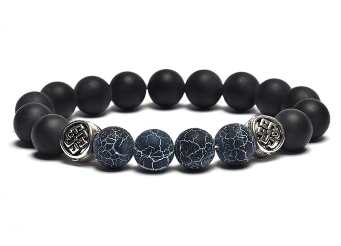 A karkötő 10 mm-es matt ónix és szürke achát ásvány gömbökből készült gumira fűzve. A fém díszítőelem 10 mm-es antiallergén végtelen csomót ábrázoló köztes. A karkötő méretének meghatározása : a csuklód méretéhez adj hozzá 2-2,5 cm-t. Az ásványok nem helyettesítik az orvosi diagnózist és kezelést. A szürke achátra jellemző, hogy a bőrrel, verejtékkel,
