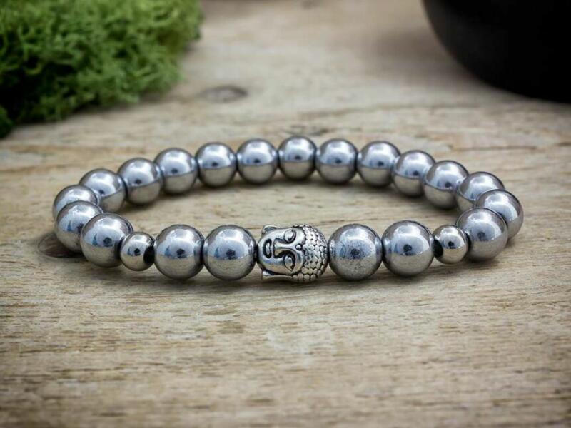 8 mm-es hematit ásvány gyöngyökből, gumira fűzött ásvány karkötő. Az ékszert egy Buddha medál díszíti. Amit a hematitról érdemes tudnod: Ez a metálosan csillogó szürkés-barnás kő más néven "vérkőként" is ismertté vált. Ez az elnevezés nem csak testi gyógyhatásai miatt illik rá, hanem mert csiszolásuk során az ember ujját vérpiros színűvé festi. A hematit eg