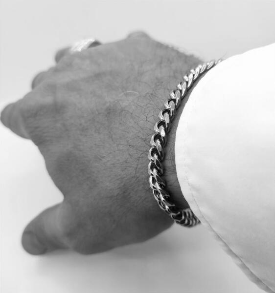 7 mm x 18 cm - 20 cm - 22 cm - 24 cm hosszúságban választható nemesacél nyaklánc , ezüst fazonban csiszolt szemekkel anti allergén, nem kopik, magasfényű, tartós ékszer az idő múlásával nem veszít fényéből