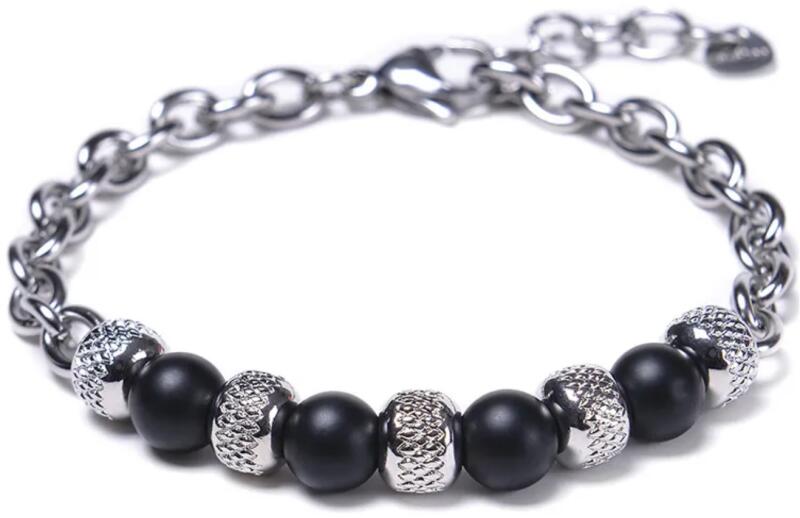 Volkan karkötő Elegáns acél karkötő gyöngyökkel, amely a kifinomultság és a természetes stílus tökéletes kombinációja. A lánc dizájn lehetővé teszi a méret egyszerű beállítását, ami kényelmes viseletet garantál mindenki számára. Ez a karkötő nagyszerű kiegészítő a mindennapi viselethez, de egyaránt alkalmas különleges eseményekre, amikor stílusos és modern