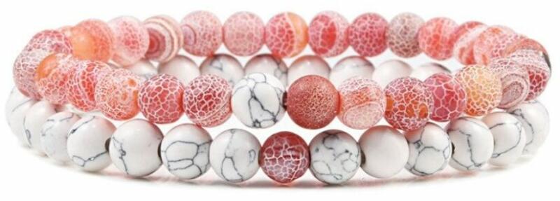 Kiváló minőségű természetes ásvány dupla karkötő. Látványos, igényes kidolgozású karkötő szett, akár pároknak is... Hossza: 18 cm, rugalmas. Gyöngyök átmérője: 6 mm (nem vastag karkötő). Egy jól megválasztott ékszer öltöztet, feldobja a napodat, valahányszor ránézel, jobb kedvre derülsz. A színekkel és anyagokkal manapság könnyű variálni a különböző st