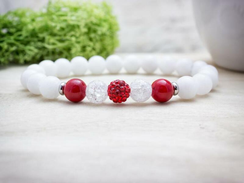 A roppantott hegyikristály, jáde és festett korall ásvány golyók gumira vannak felfűzve. Amit a jádéról érdemes tudnod: A Jáde egy gyűjtőcsoportja a kövek egy fajtájának. Lelki gyógyhatása: Több örömmel és életkedvvel ajándékoz meg minket. Növeli a bennünk lévő szeretetet, a harmónia iránti igényünket. Testi gyógyhatás: Szabályozza a szervezet sav-bázis egyens