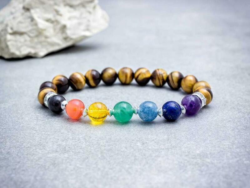Az ásvány golyók gumira vannak felfűzve. Csakra karkötő ásványai: tigrisszem, ametiszt, lápisz, akvamarin, aventurin, citrin, karneol, gránát. Nikkelmentes ékszer. Egyedi tervezés alapján készült kézműves ékszer. Amennyiben egyéni kérésed van, vagy nem találod, amit szeretnél, keress engem bátran. Figyelem! Az ásványokat, kristályokat az őskor óta használják a test,
