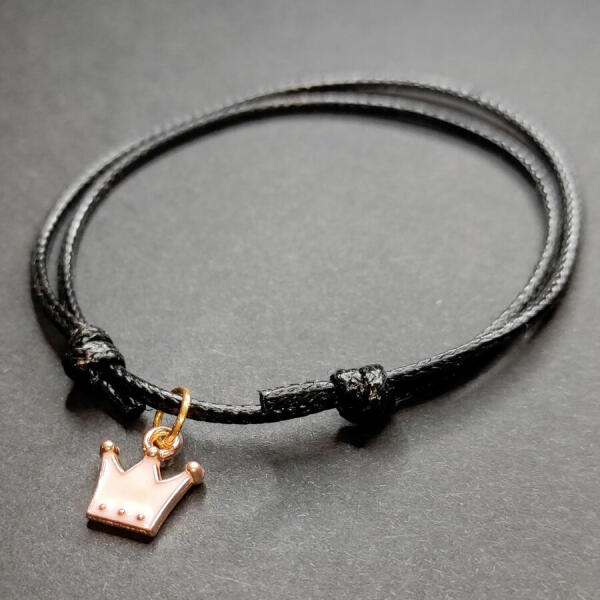 Fekete zsinórszövet karkötő pink tűzzománc korona charmmal Paraméterek:. Charm mérete kb. 1,2 cm. Charm anyaga fémötvözet. Karkötő anyaga textil.