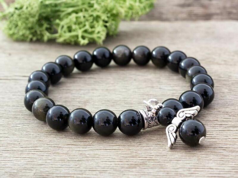 Obszidián ásványgolyókból fűzött gumis karkötő. Amit az obszidiánról érdemes tudnod: Az obszidián vulkánüveg, a föld mélyében készült. Sok színben és árnyalatban létezik, de a fekete a leginkább kedvelt és használt. A szivárvány-obszidián a legértékesebb, amely a szivárvány minden színében játszik, és az ún. apacskönny, amelyet Arizonában bányásznak. Mind
