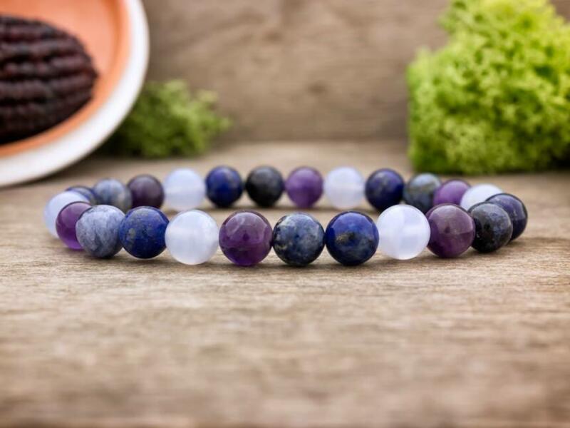 Ezt a szerencsehozó karkötőt kifejezetten a szűz jegy szülötteinek terveztük, készítettük. A karkötő szűz (08.24. - 09.23. ) jegyhez passzoló ametiszt, szodalit, lápisz lazuli és kalcedon 8mm-es ásvány gyöngyökből áll. Az ásvány golyók gumira vannak felfűzve, így kényelmes a hordása. Szűz (08.24. - 09.23. ) horoszkóp jellemzése: E jegy szülöttje igen gyakorlatias,