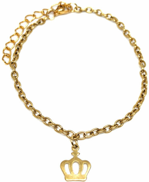 Korona charmos karkötő, arany színű. Paraméte rek: Charm mérete 1 cm. Anyaga nemesacél, karkötő anyaga rozsdamentes acél. Karkötő mérete 17+5 cm. (Ha ettől eltérő méretet szeretnél, rendeléskor a MEGJEGYZÉSBE írd be. )