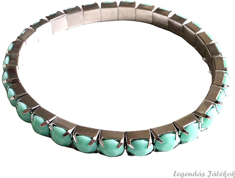 Türkizzöld gumis fém bizsu karkötő. + 2 db selyempapír ajándéktasak 9 cm. A fotók a termékről készültek.