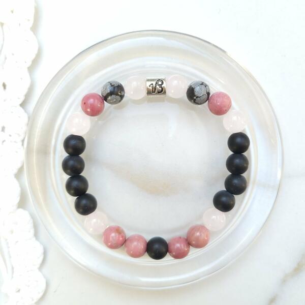 Yvonne Design horoszkópos ásványkarkötő a bak ásványaiból készítve: rózsakvarc, obszidián, rodonit, ónixA bakjegy jellemzése:Örök tervező, építő, ezért körültekintő és előrelátó is. Halatlan becsvágya hajtja előre, és nem riad vissza semmilyen eszköz használatától céljai érdekében. Haragtartó és bosszúvágyó, nehezen bocsát meg. Kitűnő szervező és dip