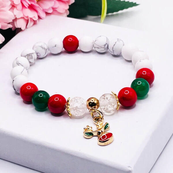 Kedves ajándék Karácsonyra ez a gumis damilra fűzött karkötő, howlit és jáde ásványok feéhasználásával, tűzzománc szarvas medállal. Ajánljuk mindenkinek, aki örömet szeretne okozni ezen a meghitt ünnepen családtagjának, barátnőjének, vagy saját magának. Tudtad hogy... ... a howlit feszültségoldó, anyagcsere szabályzó, fogyást segítő ásvány? Magnéziumtartalma