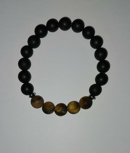 Ónix és matt Tigrisszem ásványból készült férfi karkötő Gyöngyök mérete: 10 mm-es ásványgyöngyök Rugalmas, gumis ékszerdamil alapra készült Az Ónix ásvány leginkább az öntudatot, a józan gondolkodást és a logikát erősíti, nagy segítsége lehet a labilis emberek számára, mivel kiegyensúlyozza az energiaáramlást a szervezetben. Erős védelmező ásvány, távol