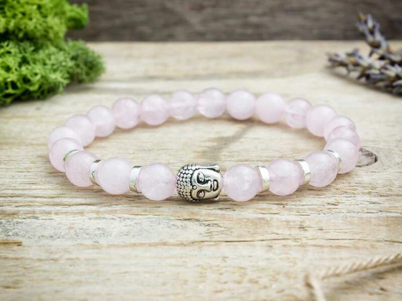 8 mm-es rózsakvarc ásvány gyöngyökből speciális gumira fűzött ezüst színű Buddha fejjel díszített karkötő. Amit a rózsakvarcról érdemes tudnod: A festetlen rózsakvarc az egész világos, szinte áttetszőtől, a ködös középrózsaszínig terjed. Az egyik legnépszerűbb kövek egyike, amely szépséges küllemének és erős gyógyhatásának köszönhető. Története a gö