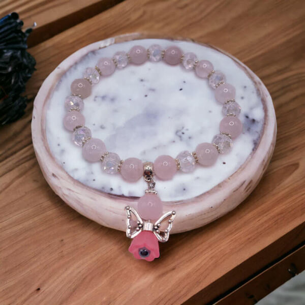 Kedves ajándék Karácsonyra ez a gumis damilra fűzött rózsakvarc ásványból készült karkötő, angyalka medállal. Ajánljuk mindenkinek, aki örömet szeretne okozni ezen a meghitt ünnepen családtagjának, barátnőjének, vagy saját magának. A karácsony a kereszténység második legnagyobb ünnepe, teológiailag a húsvét után a legnagyobb, amellyel Isten fia, Jézus Krisztus f