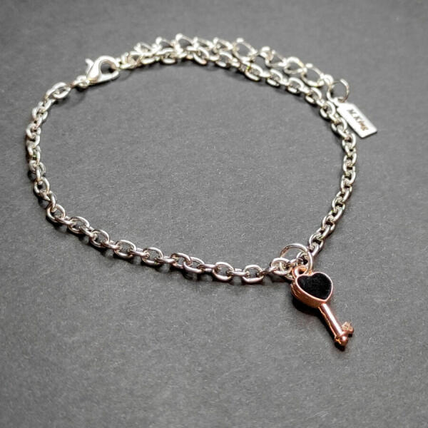 Ezüst színű karkötő fekete tűzzománc kulcs charmmal. Paraméterek:. Charm mérete kb. 1,5 cm. Charm anyaga fémötvözet. Karkötő mérete 17+5 cm. (Ha ettől eltérő méretet szeretnél, rendeléskor a MEGJEGYZÉSBE írd be. ) Karkötő anyaga rozsdamentes acél.