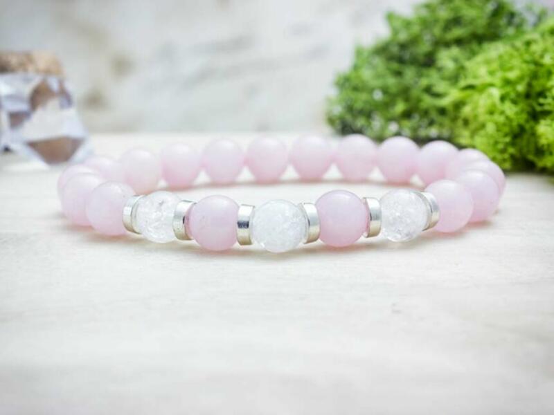 8 mm-es rózsakvarc, ametiszt és jáde ásvány golyókból fűzött gumis karkötő. Az ékszer dísze több kristályokkal kirakott gyűrű. Amit a rózsakvarcról érdemes tudnod: A festetlen rózsakvarc az egész világos, szinte áttetszőtől, a ködös középrózsaszínig terjed. Az egyik legnépszerűbb kövek egyike, amely szépséges küllemének és erős gyógyhatásának köszönhet