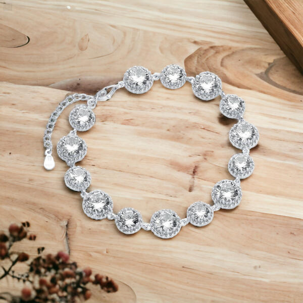 Az ezüst (925) női divatos karkötő gyönyörű fehér cirkóniával eleganciát és stílust kölcsönöz viselőjének. Ez a csodálatos ékszer tökéletes választás a nők számára, akik szeretnék feldobni öltözéküket és kiemelni egyéni stílusukat. A karkötő alapanyaga ezüst, mely az egyik legkedveltebb anyag a divatékszerek világában. Az ezüstben található 925-ös titá