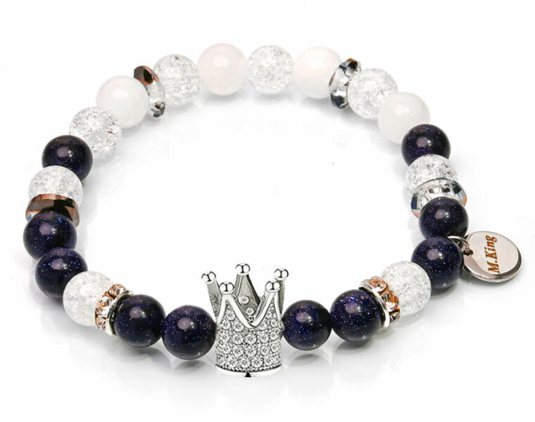 Különleges csillagporos álom ez a kék homokkő exkluzív karkötő, és a csillogó fehér hegyikristállyal és fehér jáde gyöngyökkel még sejtelmesebb az összhatás. Nem mindennapi karkötő nem mindennapi lányoknak-nőknek-asszonyoknak. A Maria King kollekció kiemelt darabja. Figyelem! A képen exkluzív kivitelű, rugalmas karkötő látható kapocs nélkül, de kérheted extra er
