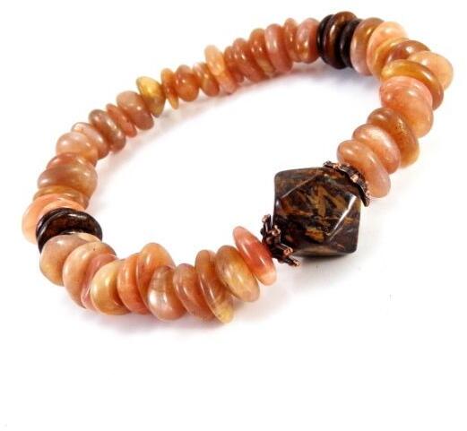 Rugalmas gumira fűzött természetes napkő karkötő bronzit díszítéssel Méret: ~12*4mm-es lapos szabálytalan ásvány gyöngyök 15x15mm-es bronzit díszítés 18-19cm hosszú strapabíró szilikon gumira fűzve Bövebb információ "ADATOK PARAMÉTEREK FÜL" alatt. A napkő gyógyhatása
