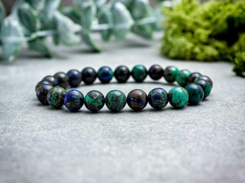 Azúr-Malachit ásvány karkötő: Az égbolt és a Föld varázslatos találkozása Ébreszd fel a benned rejlő harmóniát az Azúr-Malachit karkötővel! Az Azúr-Malachit egy különleges ásványkombináció , mely az égbolt kékjét (azurit) és a Föld zöldjét (malachit) ötvözi. Ez a káprázatos ásvány erős energetikai hatással bír, és segít megteremteni a belső békét és h