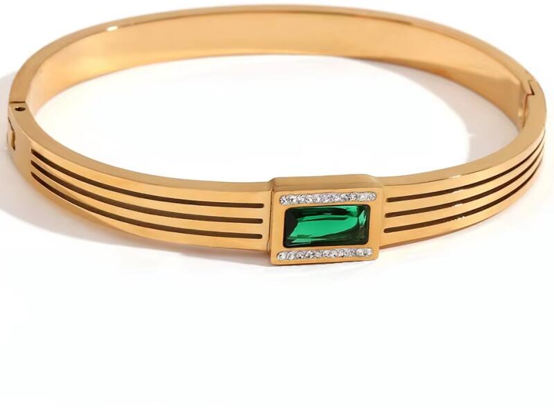 Zola Karkötő A Zola karkötő a kifinomultság és elegancia csúcsa, mely csodás kombinációja az arany színű fémnek és a smaragdzöld színű ékkőnek. A kialakítása tiszta és modern, masszív, de elegáns vonalakkal, melyeknek köszönhetően ez a karkötő ideális kiegészítő formális eseményekre vagy mint jelentős ajándék olyan hölgy számára, aki szereti a fényűző é