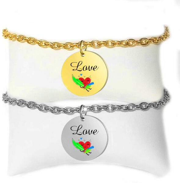 Ez az egyedi design csak nálunk kapható. A legjobb gesztus és ajándékötlet! Paraméterek: – Alumínium kör mérete 20 mm-es. Színe lehet ezüst, sötétsárga arany. (Az alumínium arany élénk, erősebb sárgaarany színű). – Alumínium szív mérete 25x21 mm. Választható ezüst, sötétsárga arany színben. – Rozsdamentes tükörfényes acél kör mérete 20 mm-es. Tükörfén