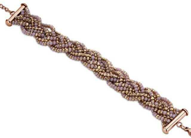 Rózsaszín gyöngyös rose gold színű karkötő Rose gold színű. Anyaga: rozsdamentes acél Méret: 21 cm