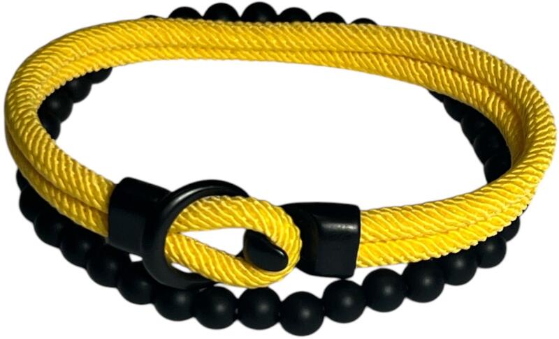 Weekdays férfi karkötő Ez az elegáns, mégis letisztult két részes férfi karkötő tökéletes választás mindazoknak, akik értékelik a stílust és a minőséget. A karkötő egyik része 6 mm-es fekete onix gyöngyökből készült, melyek letisztultságukkal és elegáns megjelenésükkel az időtlen férfi stílust képviselik. A második rész tartós, több színben elérhető vito