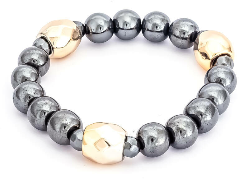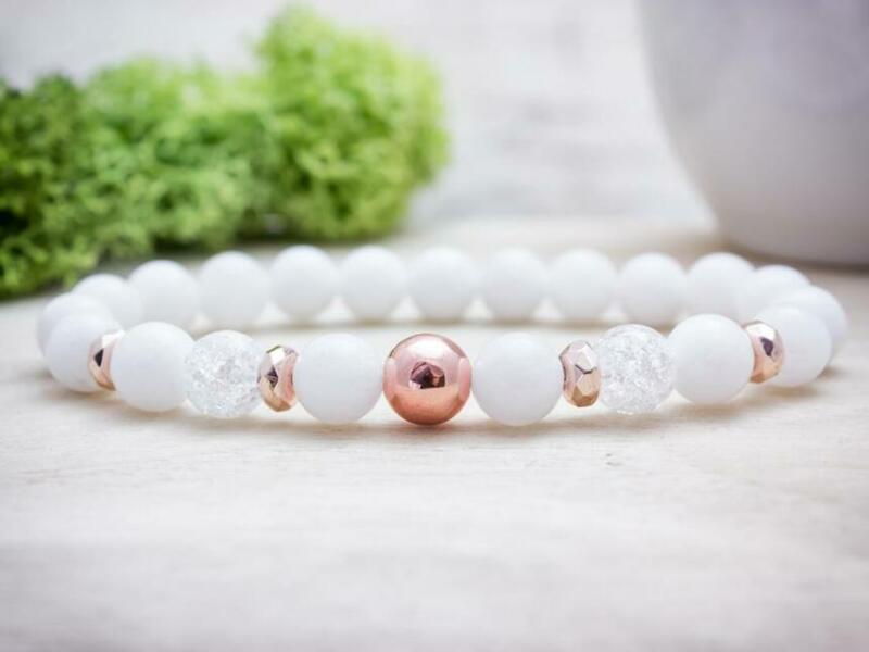 A roppantott hegyikristály, jáde és festett hematit ásvány golyók gumira vannak felfűzve. Amit a jádéról érdemes tudnod: A Jáde egy gyűjtőcsoportja a kövek egy fajtájának. Lelki gyógyhatása: Több örömmel és életkedvvel ajándékoz meg minket. Növeli a bennünk lévő szeretetet, a harmónia iránti igényünket. Testi gyógyhatás: Szabályozza a szervezet sav-bázis egyen