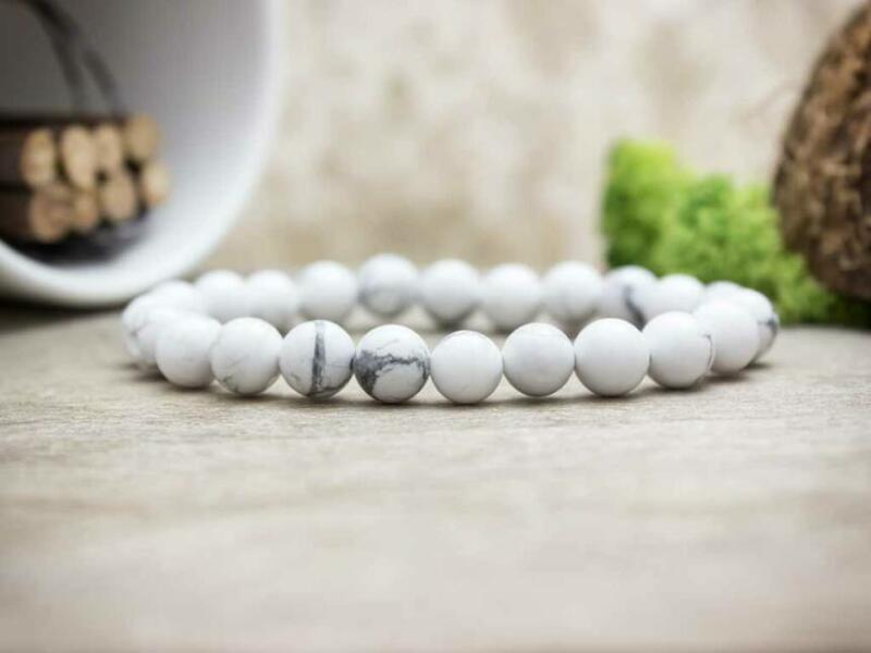 Az ásvány golyók gumira vannak felfűzve. Amit a howlitról érdemes tudnod: A howlitot Henry How-ról, egy 19-ik századi ásványkutatóról nevezték el, aki elsőkét talált rá erre a sokoldalú kőre. A howlit festetlenül matt fehér, vagy elefántcsont-színű, barnás-feketés-márványos erezettel. Lelki gyógyhatás: A howlit támogatja az ítélőképességünket, erősíti az akar