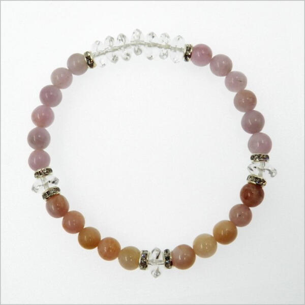 Nagyon ritka, természetes Rózsaszín kunzit féldrágakőből készült gumis karkötő hegyikristály ásvánnyal és kristály díszítéssel. Bővebb információ "ADATOK PARAMÉTEREK" fül alatt. A Kunzit gyógyhatása
