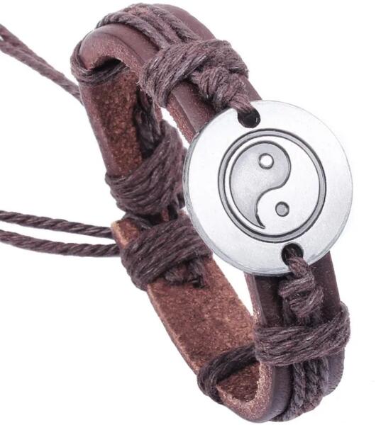 Emilio karkötő Az Emilio karkötő, amelyen a yin-yang szimbólum található, az egyensúly és harmónia elegáns kifejezése. Ez a bőr karkötő egy fém körrel van kiegészítve, amelyben a yin-yang szimbólum található, a ellentétek közötti tökéletes egyensúlyt jelképezve. A kifejező, de minimalista dizájnja alkalmassá teszi a mindennapi viselésre, miközben emlékeztet az eg
