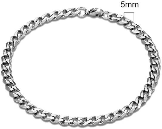 5 mm x 18 cm - 20 cm - 22 cm - 24 cm hosszúságban választható nemesacél nyaklánc , ezüst fazonban csiszolt szemekkel anti allergén, nem kopik, magasfényű, tartós ékszer az idő múlásával nem veszít fényéből