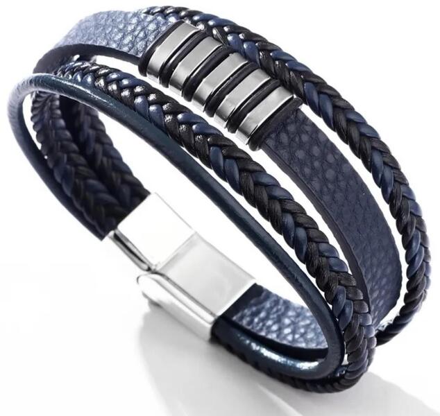 Maxim Karkötő Ez az elegáns karkötő uraknak tökéletes kombinációja a kifinomultságnak és a stílusnak. A karkötőt fonott bőr részek és fényes fém díszítőelemek alkotják, aminek köszönhetően modern hatású. Kialakításával és mutatós elemeivel ideális a hétköznapi viseléshez, vagy akár speciális eseményekre is. Ideális választás olyan urak számára, akik oly