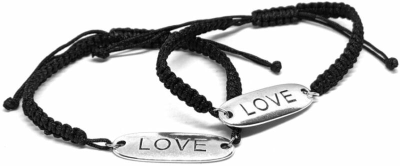 Love felirat bilétás karkötő, páros, 2 db. Paraméte rek: Biléta mérete kb. 3,4 x1,1cm. Anyaga fémötvözet, karkötő anyaga szövet. Karkötő mérete állítható, mindenkire jó. A legfontosabb dolog a világon a végtelen szeretet, hiába űzzük az anyagi javakat egész nap, ha szeretet nincs, semmi nincs.