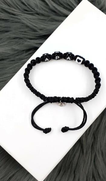Gyönyörű egyedi, APA feliratos parakord karkötő szívecskével, mely vékony parakord zsinórból font és fekete betűket tartalmaz, plusz egy szívecskét a felirat után. Amennyiben más névvel vagy szóval szeretnéd, arra is van lehetőség, írd meg nekem a Megjegyzés rovatban