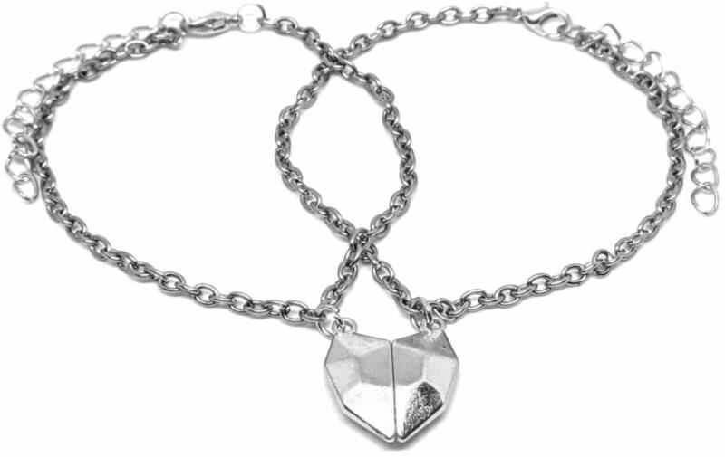 Mágnese s Szív charmos páros karkötő. A két szív fél összekapcsolódik mágnessel, nagyon menő :-). Paraméte rek: Szív teljes mérete 1,8x2 cm. Anyaga fémötvözet, karkötők anyaga rozsdamentes acél. Karkötők mérete 17+5 cm. (Ha ettől eltérő méretet szeretnél, rendeléskor a MEGJEGYZÉSBE írd be. )